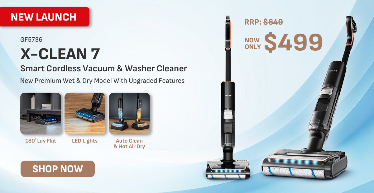 Tefal X-Clean 4 Wet & Dry Handstick Vacuum GF5035 - 2-in-1 Vacuum & Wash, Edge Cleaning, Self-Cleaning, Smart Dirt Detection, LED Display