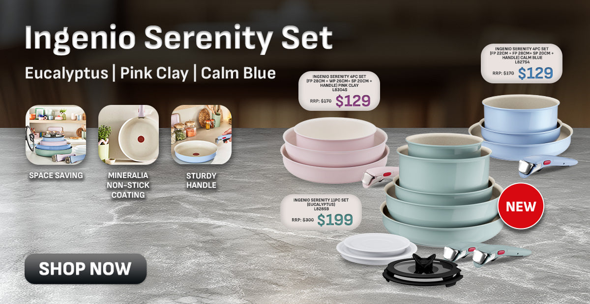 Tefal Ingenio Serenity Cookware Set - 4pc (Frypan 28cm + Wokpan 26cm+ Saucepan 20cm + Handle)