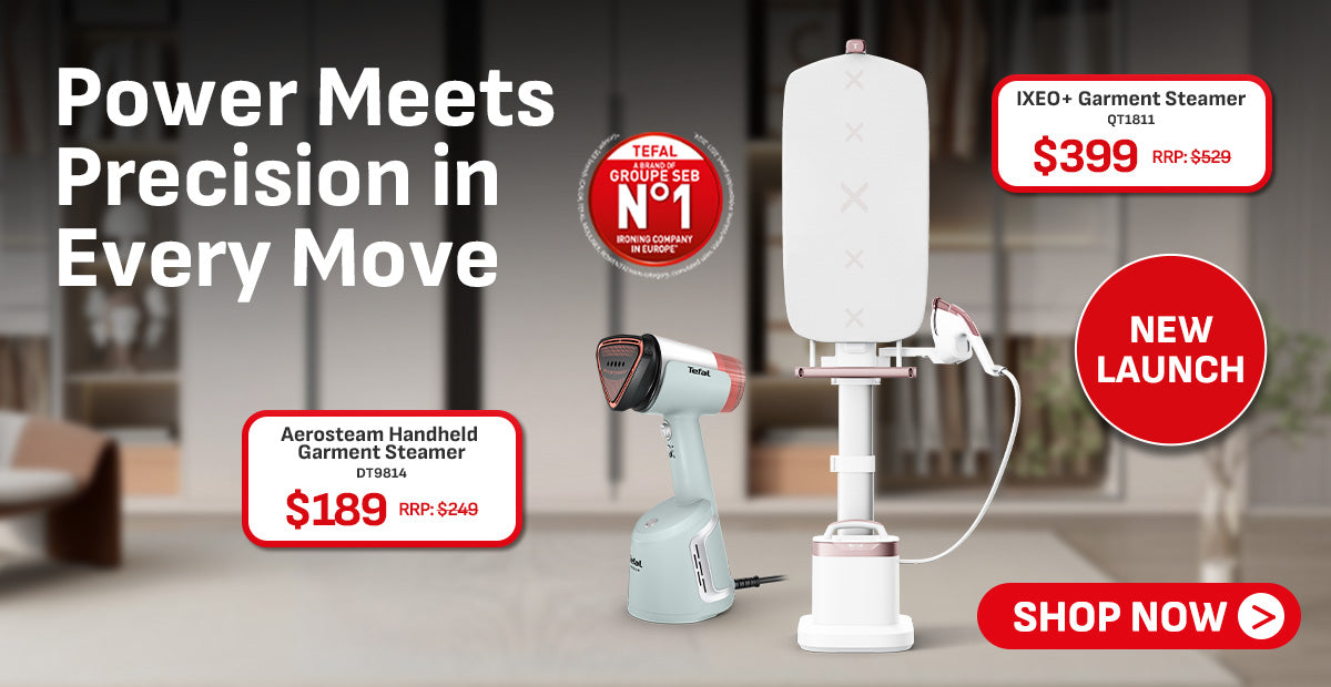 (NEW) Tefal Aerosteam Handheld Garment Steamer DT9814 – OptiFlow Suction Technology, 1400W, 20g/min Steam, 100ml Water Tank, Safe for All Fabrics