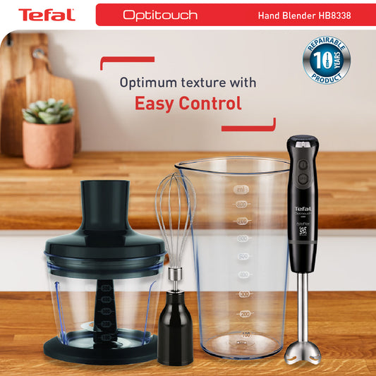 Tefal Hand Blender Optitouch HB8338, 600W, Ergonomic handle, Anti-splash guard, ActiveFlow technology, Optimal texture control