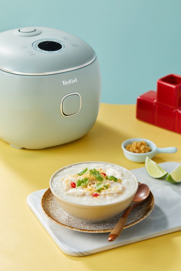 - 1. Place washed rice, chicken broth, garlic slices, and ginger slices into the rice cooker inner pot.