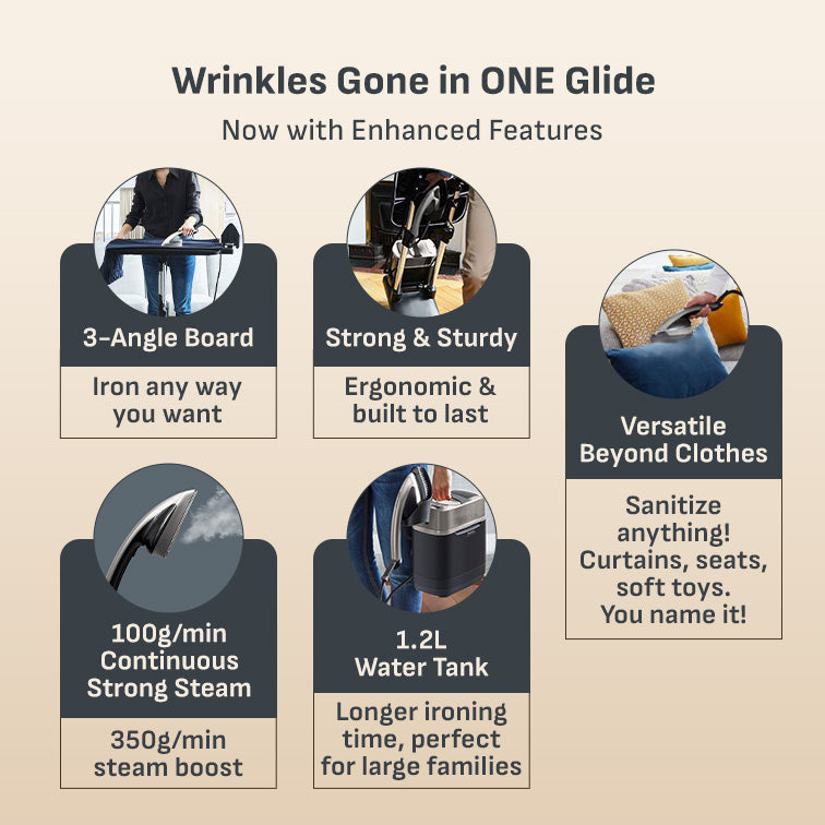 -Comes with a Classic Boiler at 5.8 bar pressure, Powerful Steam Boost 350g/min and 100g/min Continuous Steam with 3 steam levels, perfect for crease removal