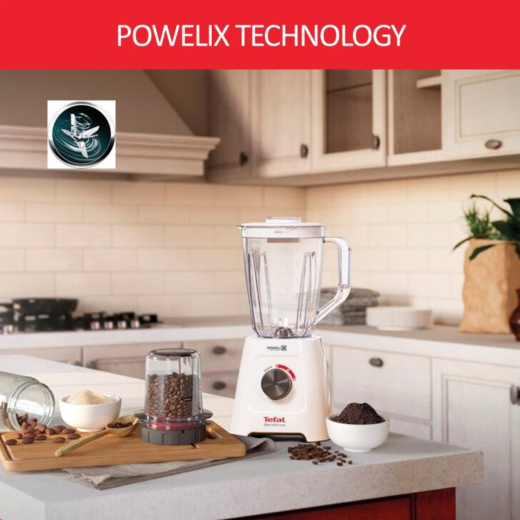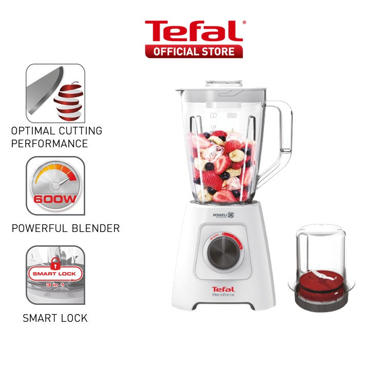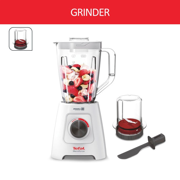 Tefal Blender Blendforce BL4271 - 600W, 2 speeds and pulse, 2L plastic jug, smart lock system, 6 Triplax blades, suction feet, additional grinder