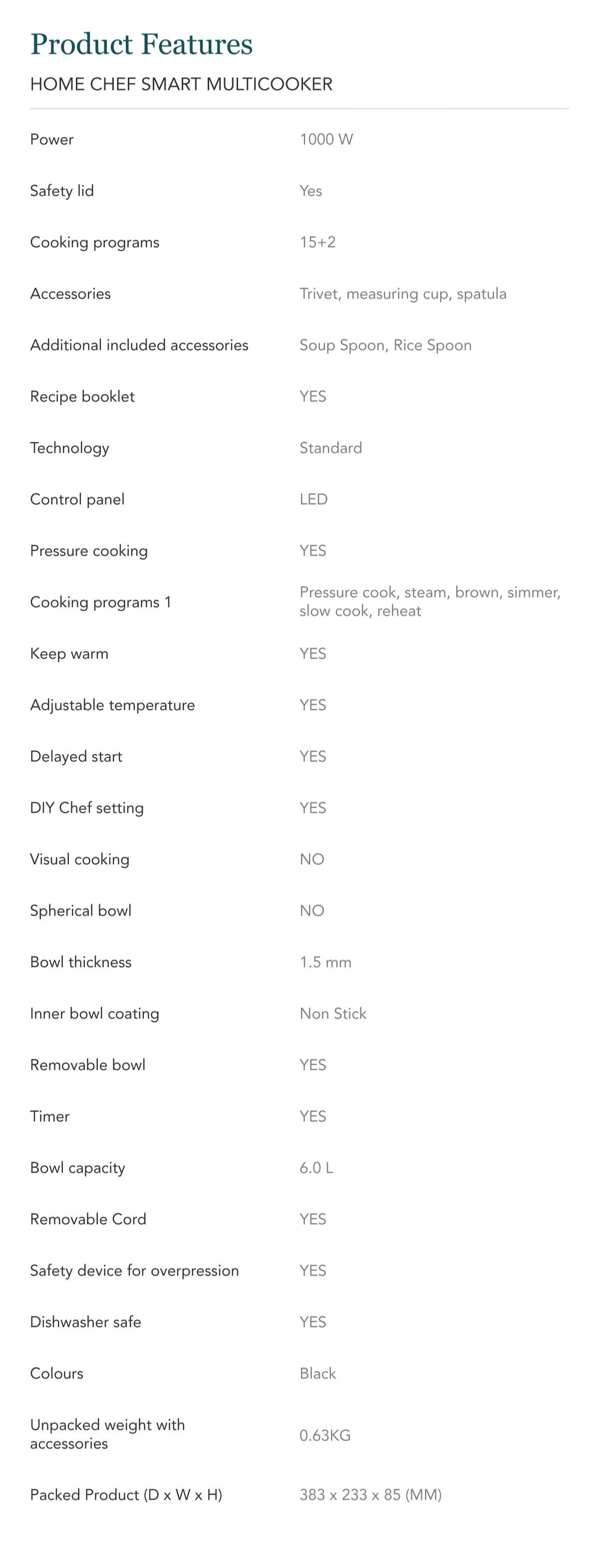 Tefal Home Chef Smart Electric Pressure Cooker 6L CY601 Multicooker, 15 programmes, 12 cups, steam, slow cook, bake, sous vide, sauce thickening