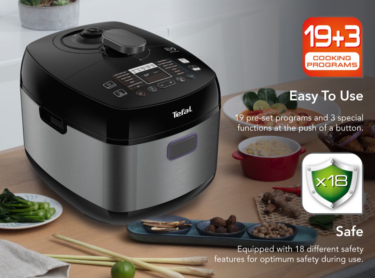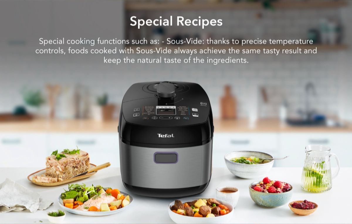 Tefal Home Chef Smart Pro Electric Pressure Cooker 4.8L CY625 Multicooker, 19 programmes, 10 cups, slow cook, saute, sous vide, bake, sauce thickening